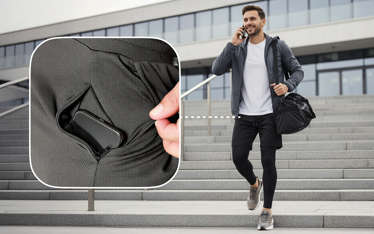 Zipped and side pockets hold your phone and keys safely. Enjoy running or lifting with nothing bouncing or shifting.