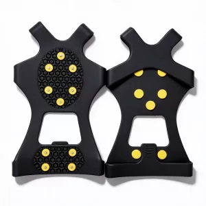 Walking outdoors in winter can be difficult and risky. Slipping becomes less likely when your shoes grip the surface. Threo ice cleats stretch quickly over trainers or boots.