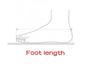 - 1. Find your foot length measurement on the size chart and note the corresponding shoe size.