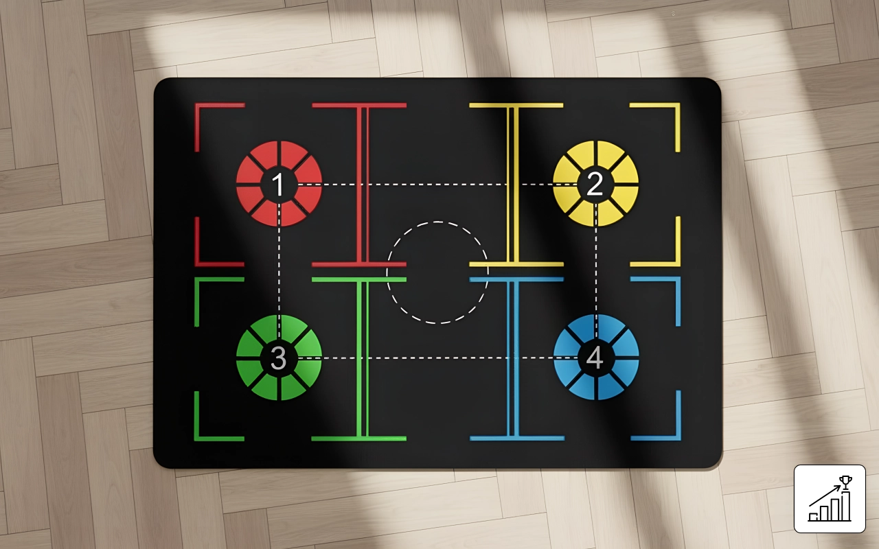 Threo mat’s clear zones help guide your footwork each time. Your skills will improve faster as you practise targeted drills daily.