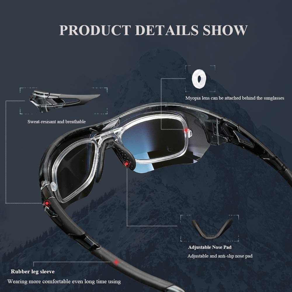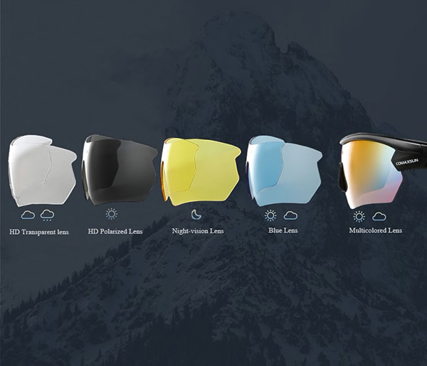 The glasses come with 5 easily interchangeable lenses to meet the needs of every condition. Simply choose one that fits you best. Whether you’re riding a bike in the shades, the strong sun, or in the woods — the road has an excellent line of sight!