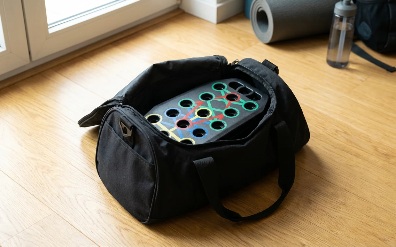 Board folds quickly, so it fits small rooms or bags. Workout anywhere without worrying about space or heavy equipment.