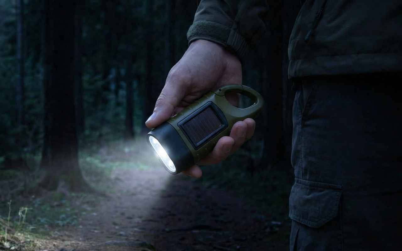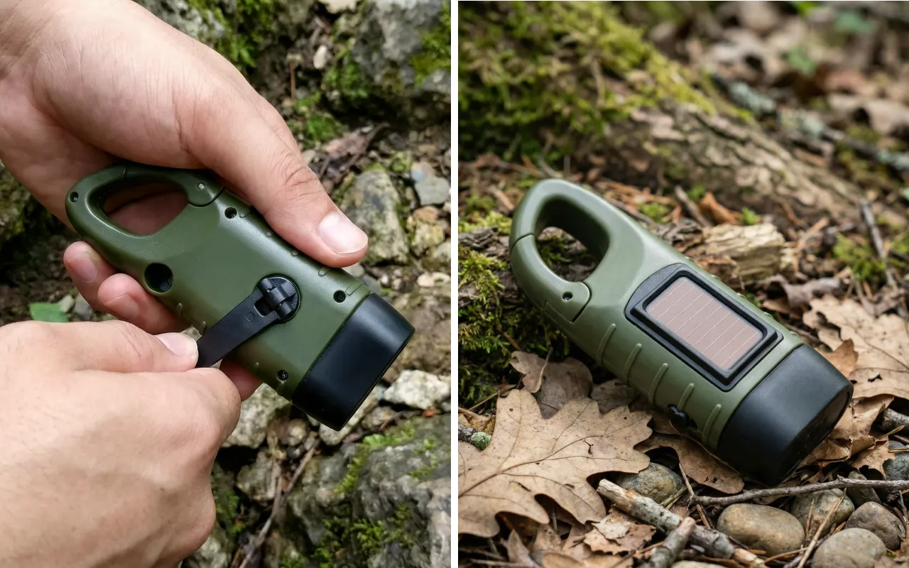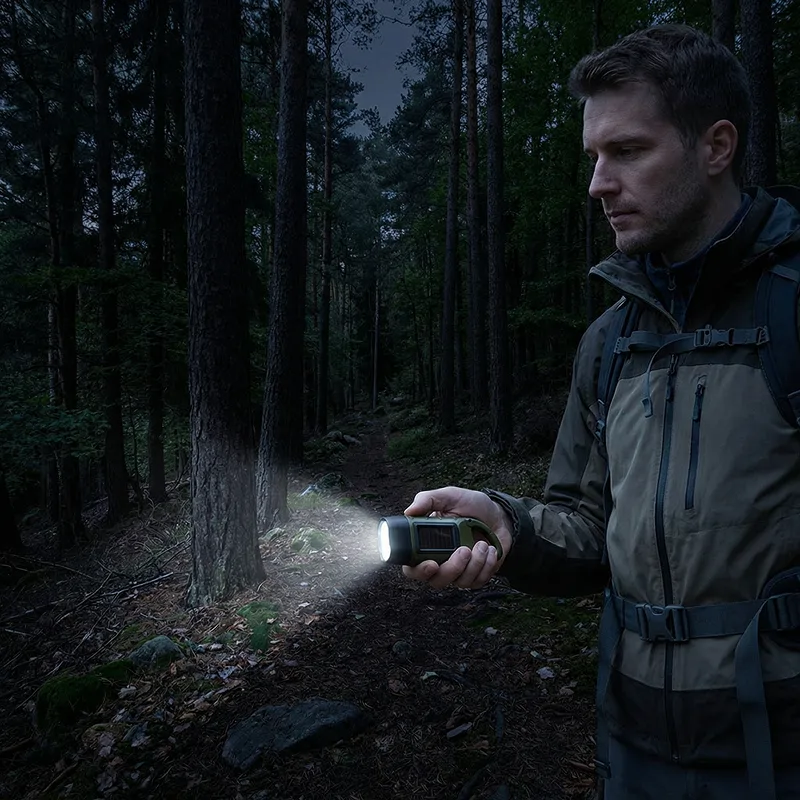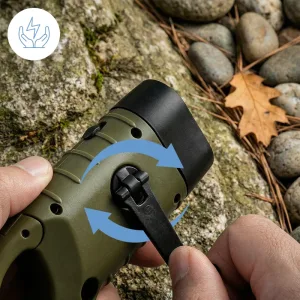 Power the Threo flashlight using sunlight or by turning the crank. No mains electricity needed, so you can always create instant brightness.
