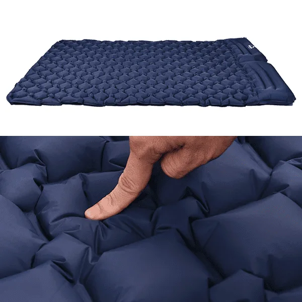 The Threo air mattress is ready to bring you unparalleled convenience. Have a fulfilling time in dryness and safety, knowing nothing will disturb your sleep. Our mat is moisture-proof, and its sturdy construction and navy color make it resistant to wear and tear. It is compact and lightweight, so you can enjoy a well-rested experience wherever you go.