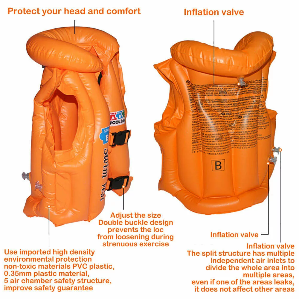 Comfortable styling lets kids move and play freely in or near the water. With its two chest straps, this life jacket promises to provide pure security. It features a charging valve to make it easy for your child to move through the water. All of the straps are adjustable to provide your child with the support they need.