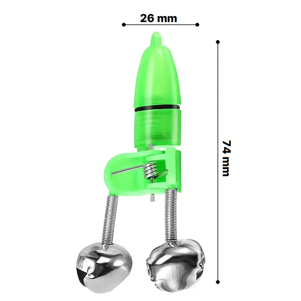 Threo fishing tool clips onto your fishing rod and alerts you with a light and twin bells when a fish bites. It's designed specifically for night fishing and features LED lights. Its adjustable sensitivity detects different fish bite levels.
