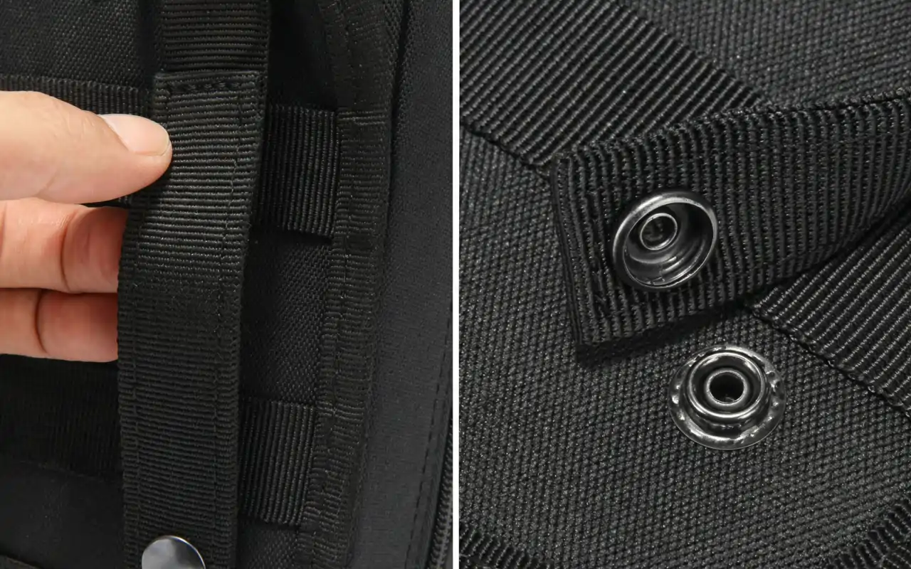 Copper snaps and rip-away panels secure the pouch easily. Attach or detach quickly from rucksacks or belts for any activity.
