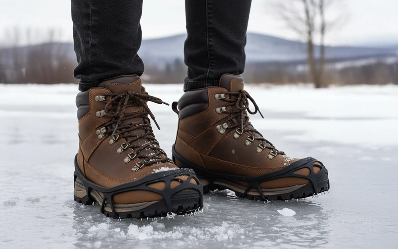 Enjoy steady steps outdoors without any worry or fear. Threo Ice Cleats fit most trainers, hiking boots, or sturdy shoes. Steel coils grip packed snow and icy pavements with confidence. Move freely during any winter adventure or daily walk.