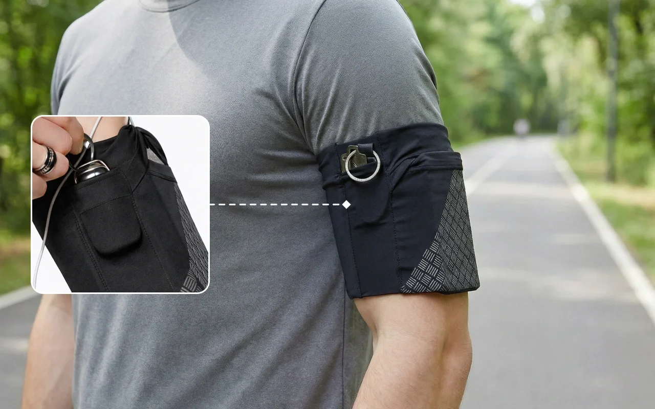 Stay focused on every stride using the Threo armband. This lightweight design keeps essentials secure throughout long sessions. Enjoy music easily while pockets hold keys and coins safely.
