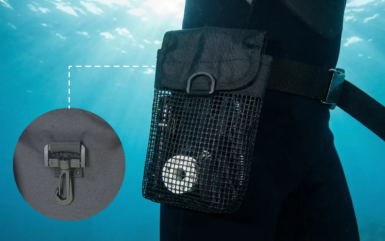 Water escapes easily through the mesh, keeping contents dry. You do not have to worry about soggy gear after diving.