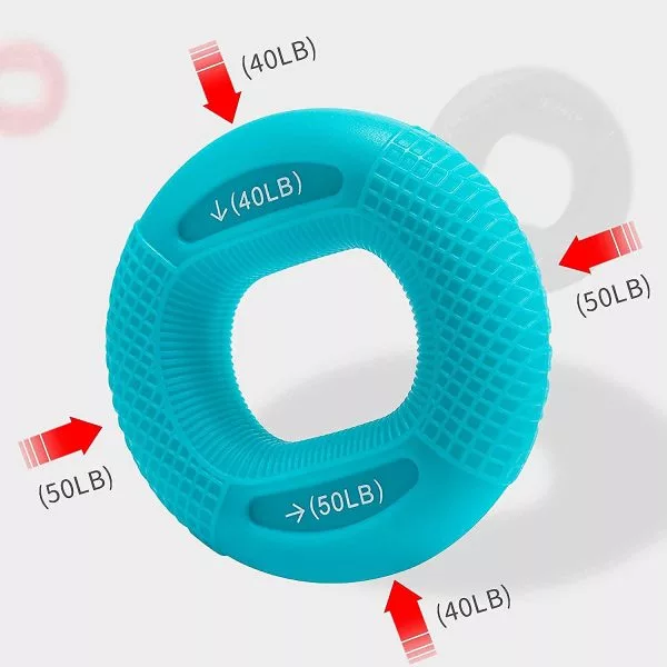 It is designed as a rectangle inside and round outside; the perfect design for your hand and your fingers. You can make grip strength training with different strength levels by adjusting the direction of the handgrip strengthener. It increases the strength of your hands while reducing fatigue. Helps balance your grip muscles and your expanding muscles. Made of skin-safe, non-slip silicone THREO grips offer different levels of resistance — 20/30, 30/40, 40/50, 50/60, and 70/80 LBS.