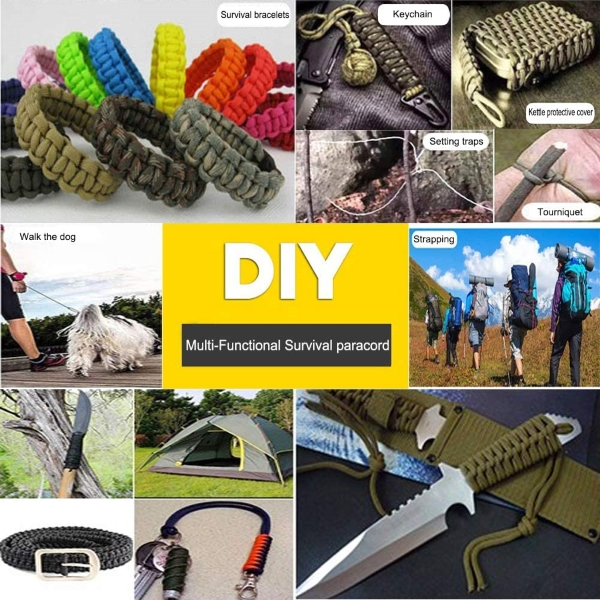 ✔️ MULTIFUNCTIONAL — Paracord has tons of practical tactical and military uses and besides tent securing it is also used for survival situations, camping, hiking, fishing, and even to make bracelets and accessories.