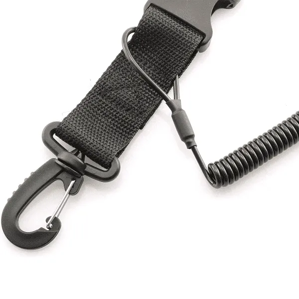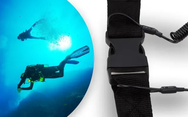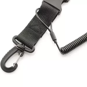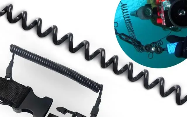 The lanyard can be worn around the wrist or attached to your BCD for added convenience and accessibility. Equipped with a quick-release buckle, it can easily be attached to various types of gear.