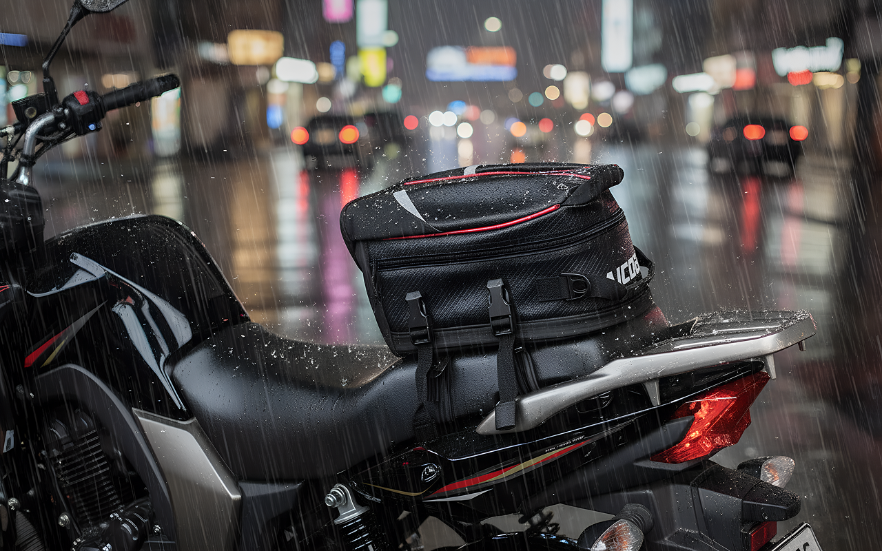 motorcycle bag, motorcycle tail bag, motorcycle back seat bag, motorcycle rear bag, waterproof tail bag