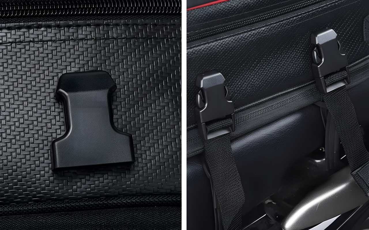 Strong fasteners prevent movement while riding. The bag stays firmly in place on uneven roads.