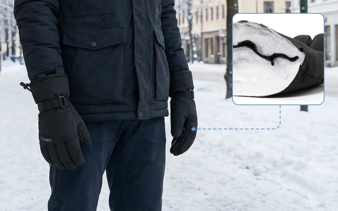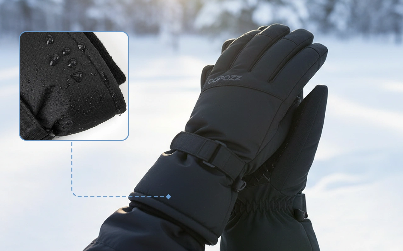 Rain or snow cannot get through the strong outer shell. Multiple layers keep hands dry while blocking icy winds.