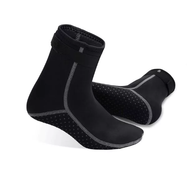 These 3mm neoprene THREO diving and beach water socks are designed to provide maximum comfort. They protect your feet from sharp rocks, seashells, coral, and jellyfish stings. You can enjoy the fantastic moments with no worries. They are great for the sandy, rugged or slippery environment.