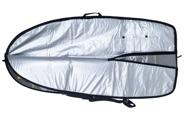 Our bag is crafted with durable materials, including silver polyester, foam, and tarpaulin. Environmental factors such as water, sun, and sand won't damage your board. If you accidentally drop it, the dense padding will absorb the shock.