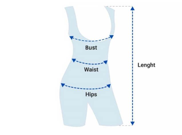 • 3. Wrap the measuring tape around the thinnest part of your waist, the fullest part of your bust and hips.